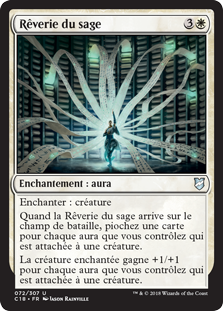 | Rules | Enchant creature When Sage's Reverie enters the battlefield, draw a card for each Aura you control that's attached to a creature. Enchanted creature gets +1/+1 for each Aura you control that's attached to a creature. |