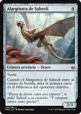 | Rules | Flying When Saheeli's Silverwing enters the battlefield, look at the top card of target opponent's library. |