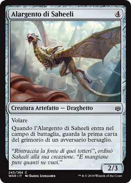 | Rules | Flying When Saheeli's Silverwing enters the battlefield, look at the top card of target opponent's library. |