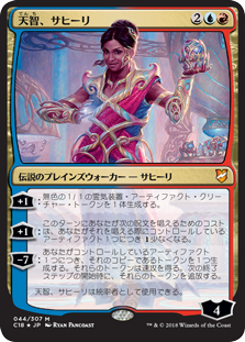 | Rules | +1: Create a 1/1 colorless Servo artifact creature token. +1: The next spell you cast this turn costs less to cast for each artifact you control as you cast it. −7: For each artifact you control, create a token that's a copy of it. Those tokens gain haste. Exile those tokens at the beginning of the next end step. Saheeli, the Gifted can be your commander. |
