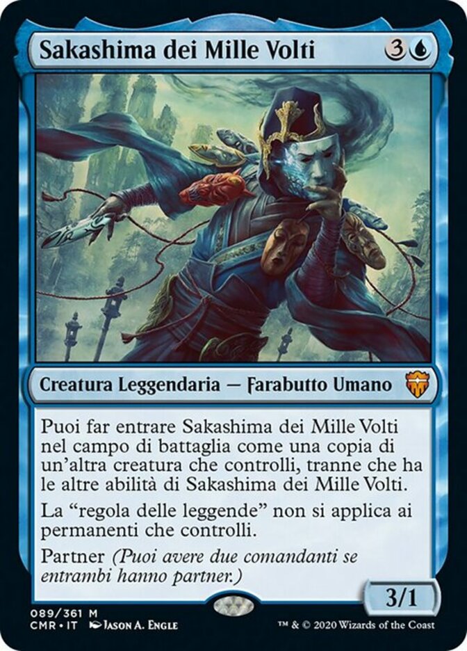 | Rules | You may have Sakashima of a Thousand Faces enter the battlefield as a copy of another creature you control, except it has Sakashima of a Thousand Faces's other abilities. The "legend rule" doesn't apply to permanents you control. Partner (You can have two commanders if both have partner.) |