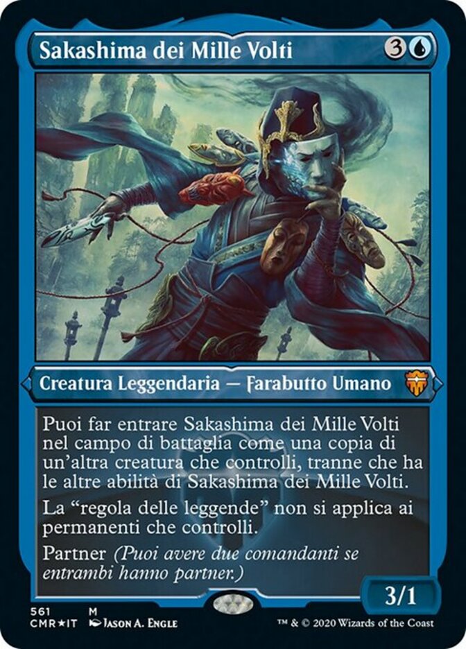 | Rules | You may have Sakashima of a Thousand Faces enter the battlefield as a copy of another creature you control, except it has Sakashima of a Thousand Faces's other abilities. The "legend rule" doesn't apply to permanents you control. Partner (You can have two commanders if both have partner.) |