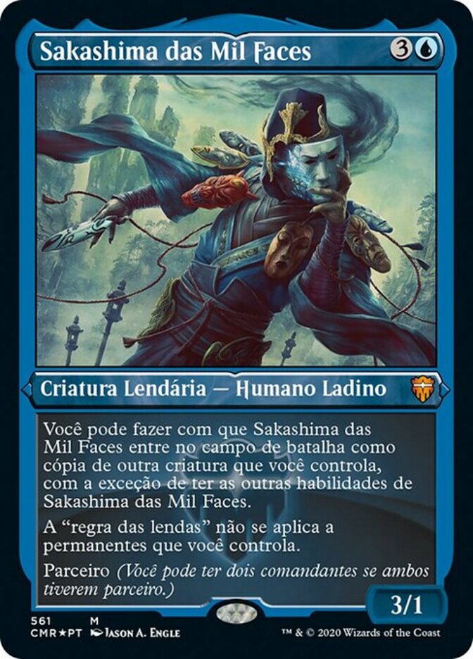 | Rules | You may have Sakashima of a Thousand Faces enter the battlefield as a copy of another creature you control, except it has Sakashima of a Thousand Faces's other abilities. The "legend rule" doesn't apply to permanents you control. Partner (You can have two commanders if both have partner.) |