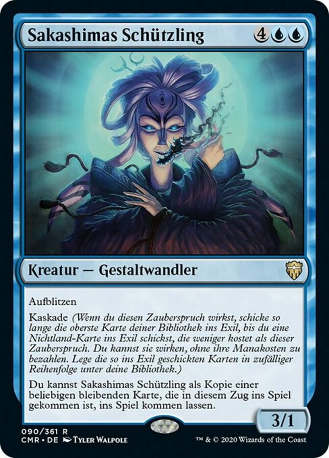 | Rules | Flash Cascade (When you cast this spell, exile cards from the top of your library until you exile a nonland card that costs less. You may cast it without paying its mana cost. Put the exiled cards on the bottom of your library in a random order.) You may have Sakashima's Protege enter the battlefield as a copy of any permanent that entered the battlefield this turn. |
