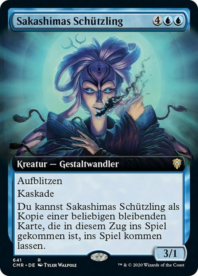 | Rules | Flash Cascade (When you cast this spell, exile cards from the top of your library until you exile a nonland card that costs less. You may cast it without paying its mana cost. Put the exiled cards on the bottom of your library in a random order.) You may have Sakashima's Protege enter the battlefield as a copy of any permanent that entered the battlefield this turn. |