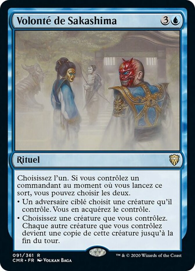 | Rules | Choose one. If you control a commander as you cast this spell, you may choose both. • Target opponent chooses a creature they control. You gain control of it. • Choose a creature you control. Each other creature you control becomes a copy of that creature until end of turn. |