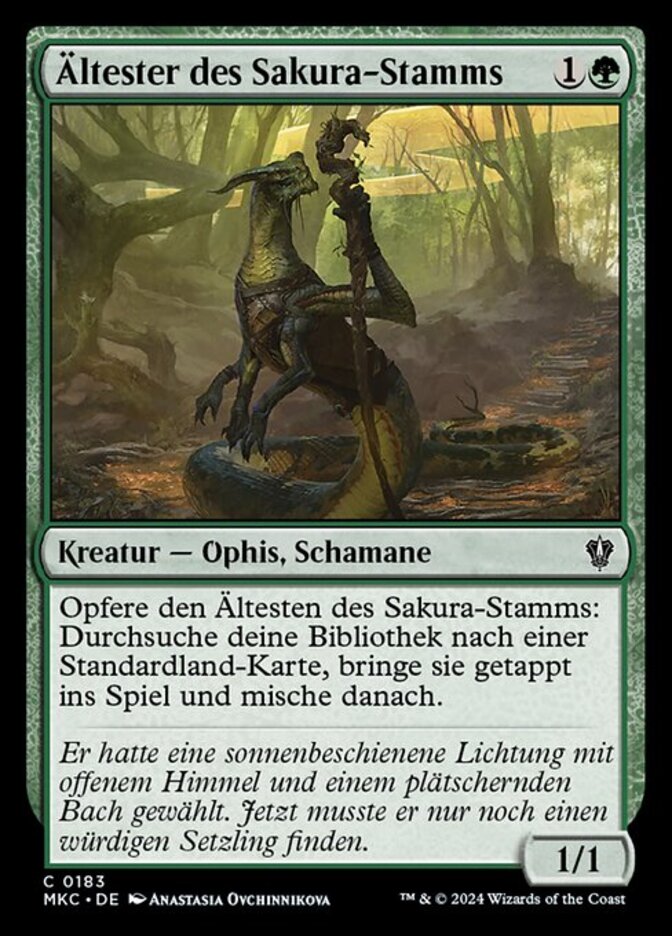 | Rules | Sacrifice Sakura-Tribe Elder: Search your library for a basic land card, put that card onto the battlefield tapped, then shuffle. |