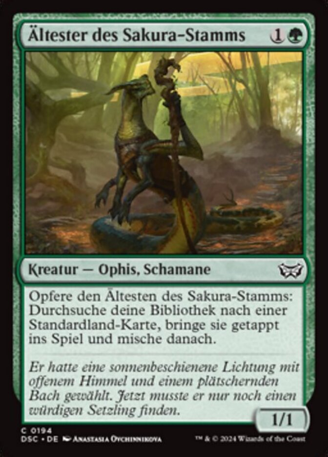 | Rules | Sacrifice Sakura-Tribe Elder: Search your library for a basic land card, put that card onto the battlefield tapped, then shuffle. |