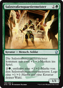 | Rules | Salt Road Quartermasters enters the battlefield with two +1/+1 counters on it. , Remove a +1/+1 counter from Salt Road Quartermasters: Put a +1/+1 counter on target creature. |