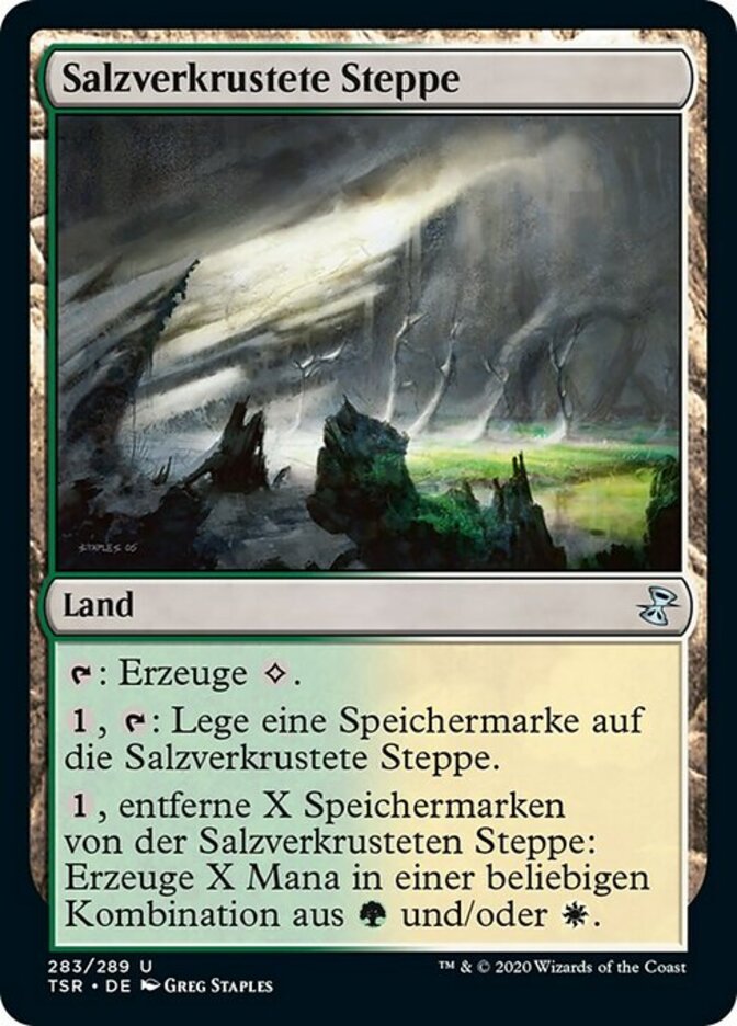 | Rules | : Add . , : Put a storage counter on Saltcrusted Steppe. , Remove X storage counters from Saltcrusted Steppe: Add X mana in any combination of and/or . |