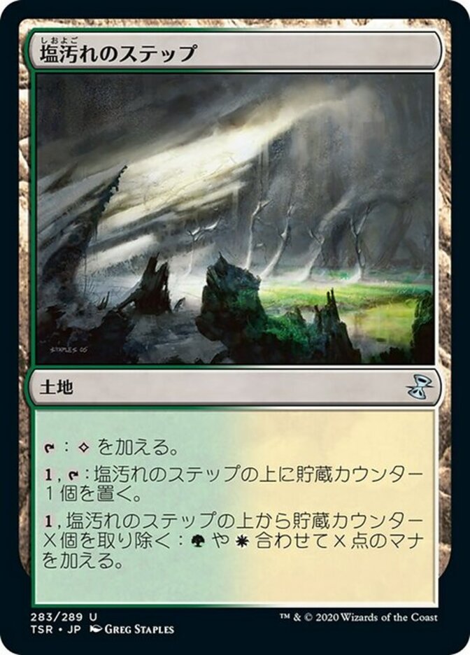 | Rules | : Add . , : Put a storage counter on Saltcrusted Steppe. , Remove X storage counters from Saltcrusted Steppe: Add X mana in any combination of and/or . |