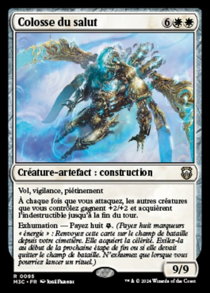 | Rules | Flying, vigilance, trample Whenever you attack, other creatures you control get +2/+2 and gain indestructible until end of turn. Unearth—Pay eight . (Pay eight energy counters: Return this card from your graveyard to the battlefield. It gains haste. Exile it at the beginning of the next end step or if it would leave the battlefield. Unearth only as a sorcery.) |