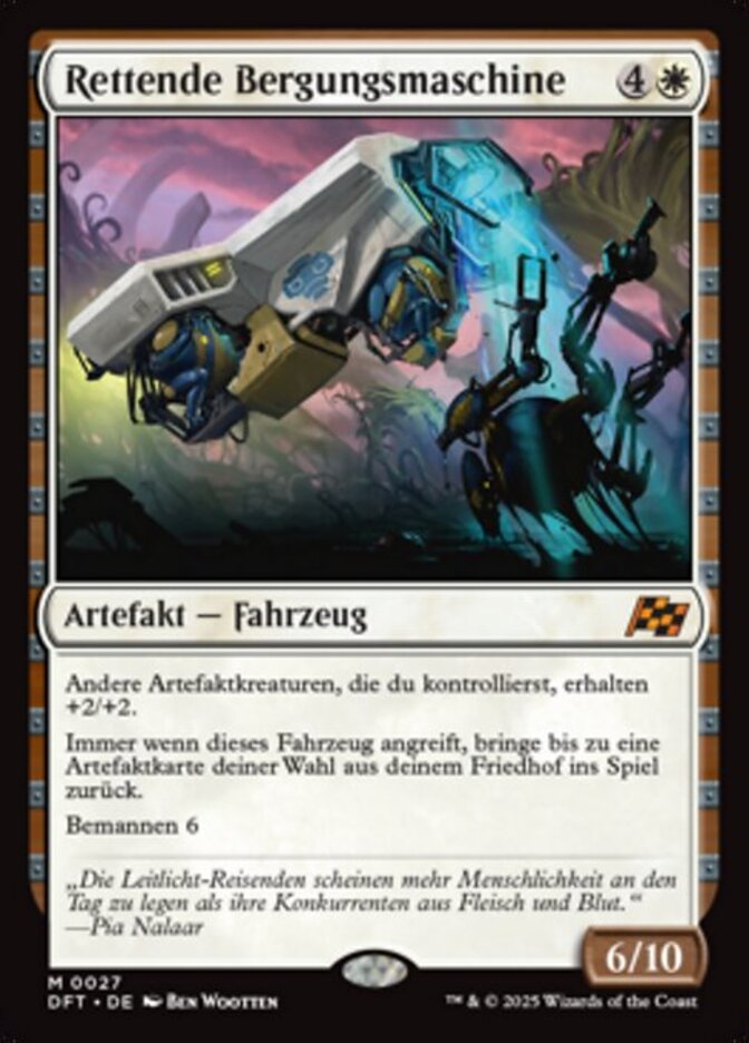 | Rules | Other artifact creatures you control get +2/+2. Whenever this Vehicle attacks, return up to one target artifact card from your graveyard to the battlefield. Crew 6 |
