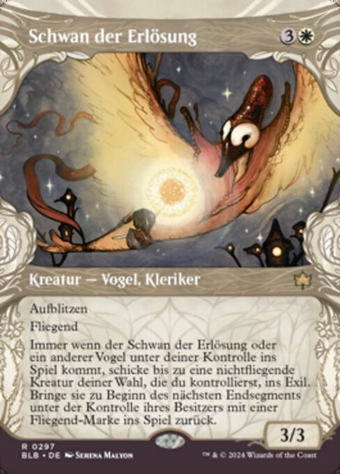 | Rules | Flash Flying Whenever Salvation Swan or another Bird you control enters, exile up to one target creature you control without flying. Return it to the battlefield under its owner's control with a flying counter on it at the beginning of the next end step. |