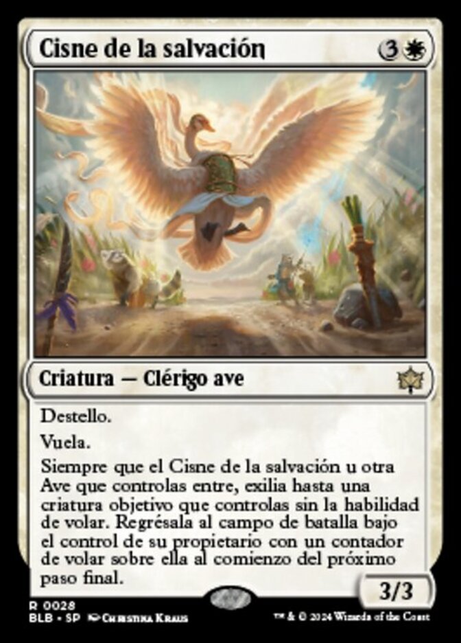 | Rules | Flash Flying Whenever Salvation Swan or another Bird you control enters, exile up to one target creature you control without flying. Return it to the battlefield under its owner's control with a flying counter on it at the beginning of the next end step. |