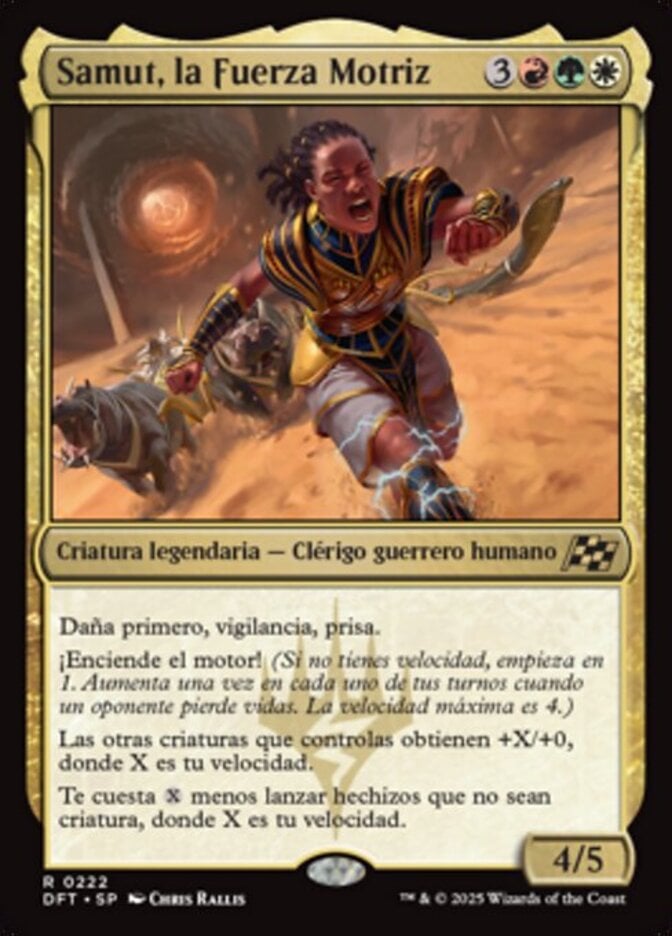 | Rules | First strike, vigilance, haste Start your engines! (If you have no speed, it starts at 1. It increases once on each of your turns when an opponent loses life. Max speed is 4.) Other creatures you control get +X/+0, where X is your speed. Noncreature spells you cast cost less to cast, where X is your speed. |