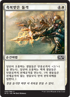 | Rules | Creatures you control get +2/+1 until end of turn. White creatures you control also gain first strike until end of turn. (They deal combat damage before creatures without first strike.) |