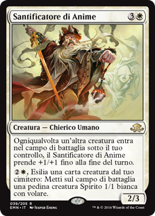 | Rules | Whenever another creature enters the battlefield under your control, Sanctifier of Souls gets +1/+1 until end of turn. , Exile a creature card from your graveyard: Create a 1/1 white Spirit creature token with flying. |