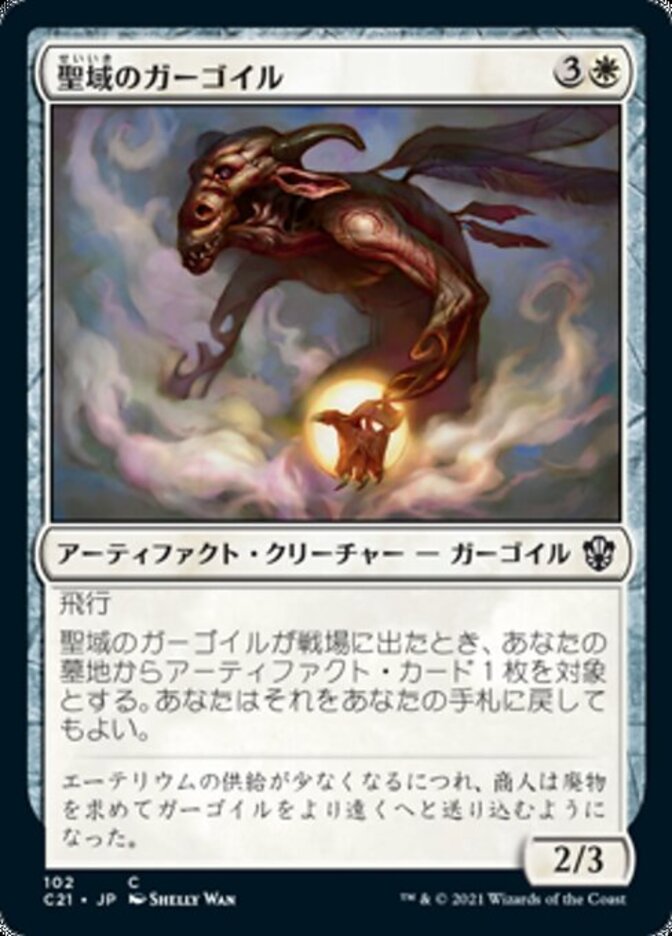 | Rules | Flying When Sanctum Gargoyle enters the battlefield, you may return target artifact card from your graveyard to your hand. |