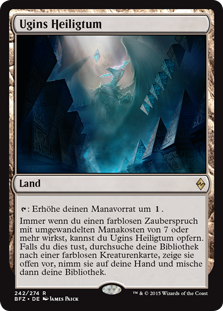 | Rules | : Add . Whenever you cast a colorless spell with mana value 7 or greater, you may sacrifice Sanctum of Ugin. If you do, search your library for a colorless creature card, reveal it, put it into your hand, then shuffle. |