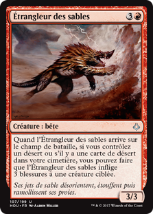 | Rules | When Sand Strangler enters the battlefield, if you control a Desert or there is a Desert card in your graveyard, you may have Sand Strangler deal 3 damage to target creature. |