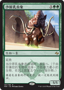 | Rules | Reach When Sandsteppe Mastodon enters the battlefield, bolster 5. (Choose a creature with the least toughness among creatures you control and put five +1/+1 counters on it.) |