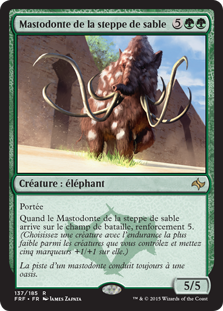 | Rules | Reach When Sandsteppe Mastodon enters the battlefield, bolster 5. (Choose a creature with the least toughness among creatures you control and put five +1/+1 counters on it.) |