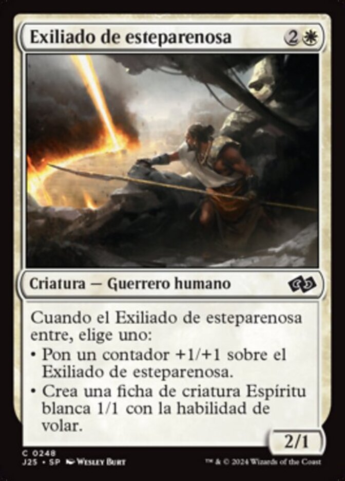 | Rules | When Sandsteppe Outcast enters the battlefield, choose one — • Put a +1/+1 counter on Sandsteppe Outcast. • Create a 1/1 white Spirit creature token with flying. |
