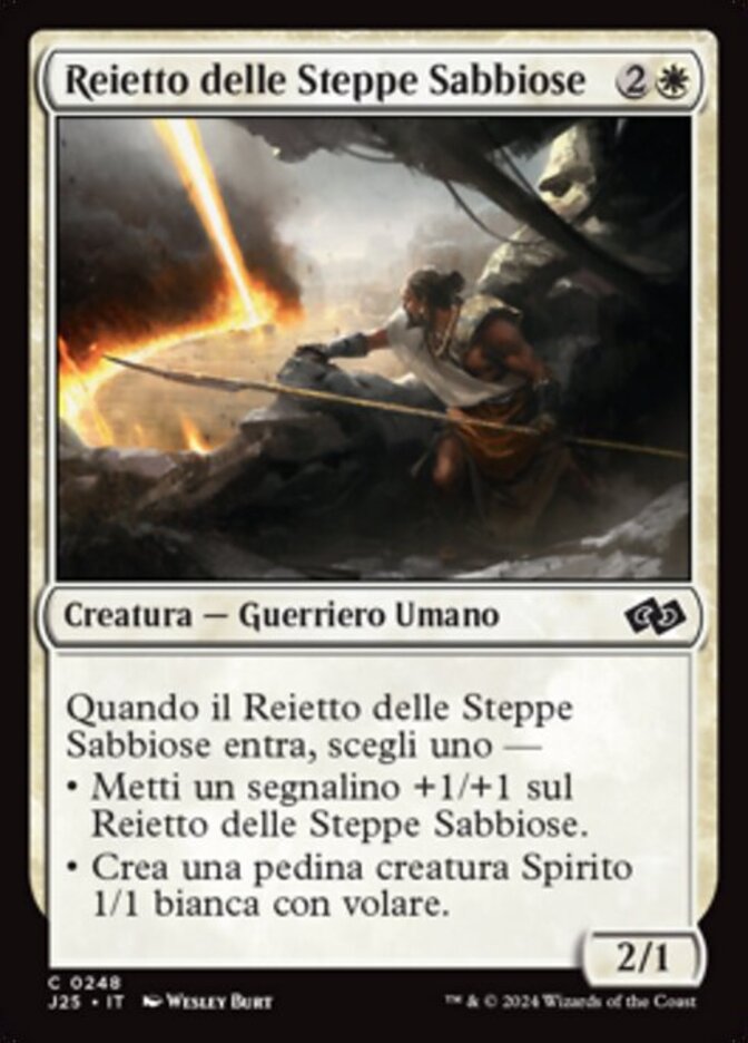 | Rules | When Sandsteppe Outcast enters the battlefield, choose one — • Put a +1/+1 counter on Sandsteppe Outcast. • Create a 1/1 white Spirit creature token with flying. |