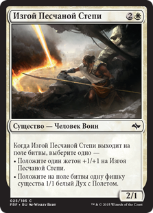 | Rules | When Sandsteppe Outcast enters the battlefield, choose one — • Put a +1/+1 counter on Sandsteppe Outcast. • Create a 1/1 white Spirit creature token with flying. |