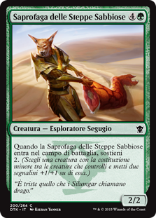 | Rules | When Sandsteppe Scavenger enters the battlefield, bolster 2. (Choose a creature with the least toughness among creatures you control and put two +1/+1 counters on it.) |