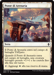| Rules | Sandstone Bridge enters the battlefield tapped. When Sandstone Bridge enters the battlefield, target creature gets +1/+1 and gains vigilance until end of turn. : Add . |