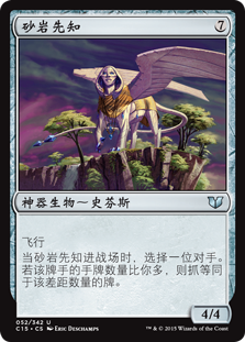 | Rules | Flying When Sandstone Oracle enters the battlefield, choose an opponent. If that player has more cards in hand than you, draw cards equal to the difference. |