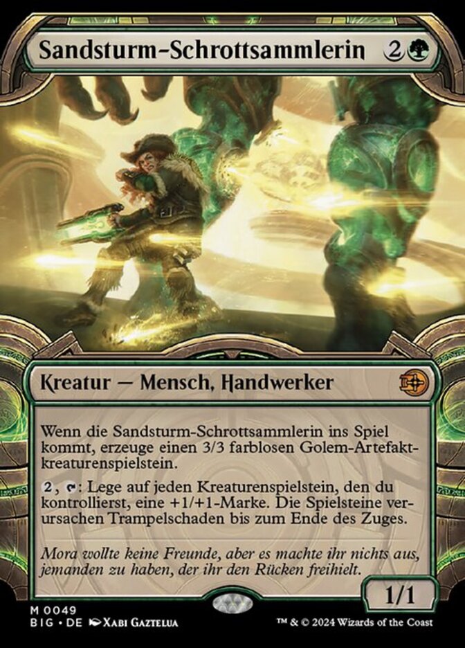 | Rules | When Sandstorm Salvager enters the battlefield, create a 3/3 colorless Golem artifact creature token. , : Put a +1/+1 counter on each creature token you control. They gain trample until end of turn. |