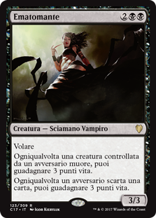 | Rules | Flying Whenever a creature an opponent controls dies, you may gain 3 life. Whenever an opponent discards a card, you may gain 3 life. |