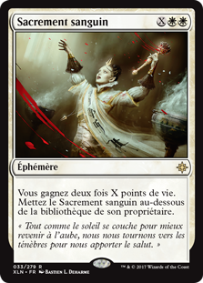 | Rules | You gain twice X life. Put Sanguine Sacrament on the bottom of its owner's library. |