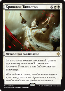 | Rules | You gain twice X life. Put Sanguine Sacrament on the bottom of its owner's library. |