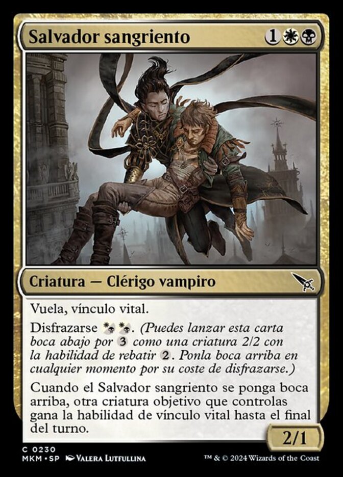 | Rules | Flying, lifelink Disguise (You may cast this card face down for as a 2/2 creature with ward . Turn it face up any time for its disguise cost.) When Sanguine Savior is turned face up, another target creature you control gains lifelink until end of turn. |