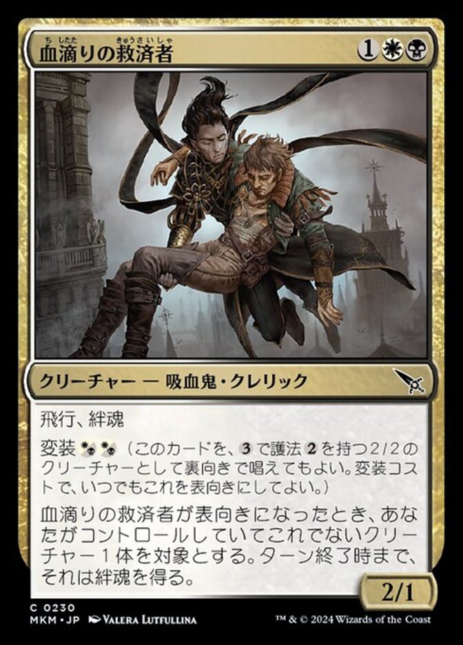 | Rules | Flying, lifelink Disguise (You may cast this card face down for as a 2/2 creature with ward . Turn it face up any time for its disguise cost.) When Sanguine Savior is turned face up, another target creature you control gains lifelink until end of turn. |
