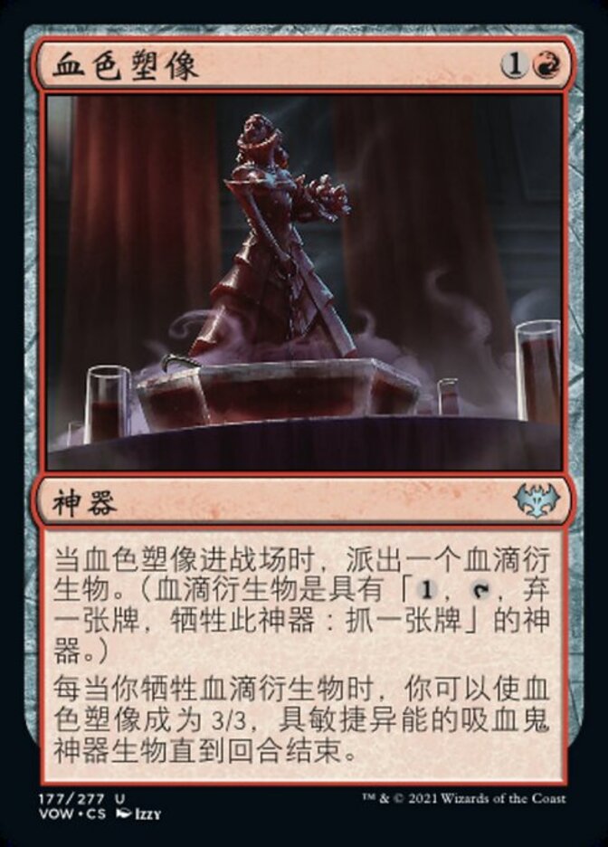| Rules | When Sanguine Statuette enters the battlefield, create a Blood token. (It's an artifact with ", , Discard a card, Sacrifice this artifact: Draw a card.") Whenever you sacrifice a Blood token, you may have Sanguine Statuette become a 3/3 Vampire artifact creature with haste until end of turn. |