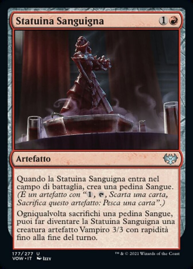 | Rules | When Sanguine Statuette enters the battlefield, create a Blood token. (It's an artifact with ", , Discard a card, Sacrifice this artifact: Draw a card.") Whenever you sacrifice a Blood token, you may have Sanguine Statuette become a 3/3 Vampire artifact creature with haste until end of turn. |