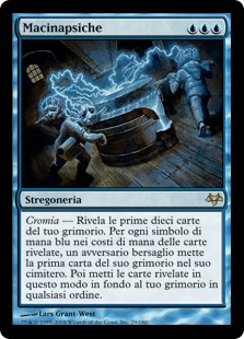 | Rules | Chroma — Reveal the top ten cards of your library. For each blue mana symbol in the mana costs of the revealed cards, target opponent mills a card. Then put the cards you revealed this way on the bottom of your library in any order. |