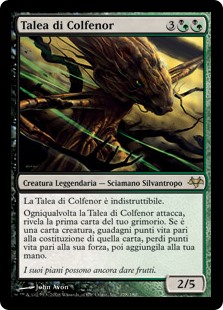 | Rules | Indestructible Whenever Sapling of Colfenor attacks, reveal the top card of your library. If it's a creature card, you gain life equal to that card's toughness, lose life equal to its power, then put it into your hand. |