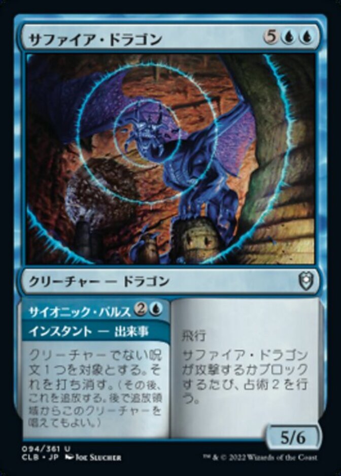| Rules | Flying Whenever Sapphire Dragon attacks or blocks, scry 2. // Counter target noncreature spell. (Then exile this card. You may cast the creature later from exile.) |