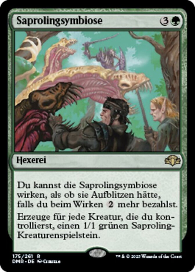| Rules | You may cast Saproling Symbiosis as though it had flash if you pay more to cast it. (You may cast it any time you could cast an instant.) Create a 1/1 green Saproling creature token for each creature you control. |