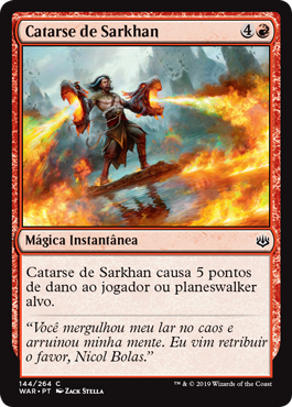 | Rules | Sarkhan's Catharsis deals 5 damage to target player or planeswalker. |