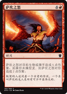 | Rules | Sarkhan's Rage deals 5 damage to any target. If you control no Dragons, Sarkhan's Rage deals 2 damage to you. |