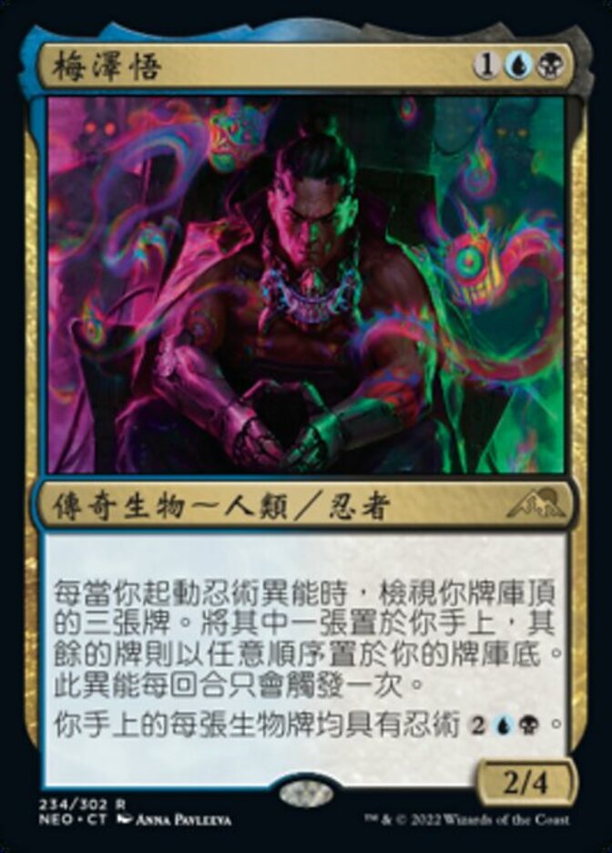 | Rules | Whenever you activate a ninjutsu ability, look at the top three cards of your library. Put one of them into your hand and the rest on the bottom of your library in any order. This ability triggers only once each turn. Each creature card in your hand has ninjutsu . |