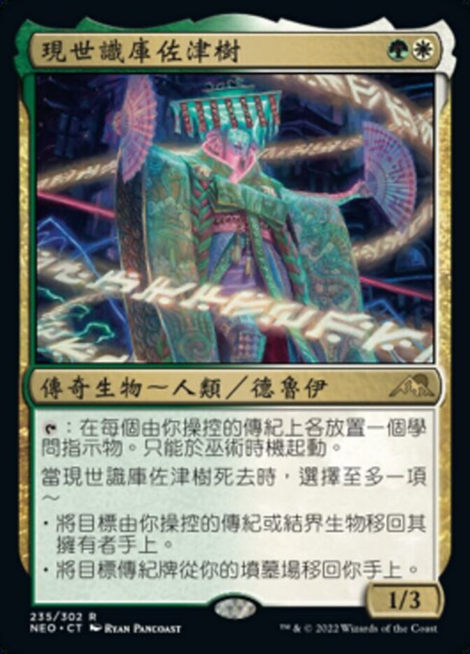 | Rules | : Put a lore counter on each Saga you control. Activate only as a sorcery. When Satsuki, the Living Lore dies, choose up to one — • Return target Saga or enchantment creature you control to its owner's hand. • Return target Saga card from your graveyard to your hand. |
