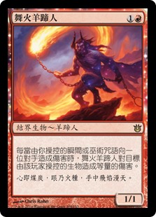 | Rules | Whenever an instant or sorcery spell you control deals damage to an opponent, Satyr Firedancer deals that much damage to target creature that player controls. |